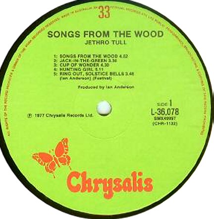 Chrysalis - Green label - Picture inner sleeve with Tull discography |