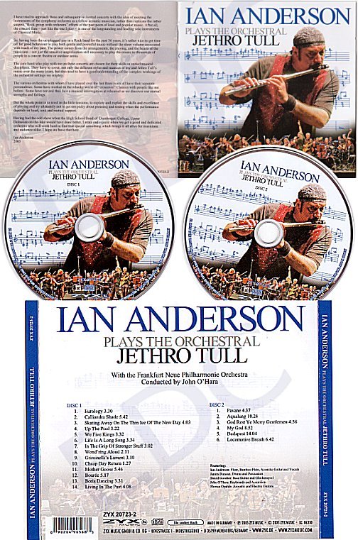 | Ian Anderson - Flute, Bamboo Flute,Vocals & Acoustic Guitar. Florian Opahle - Acoustic & Electric Guitars. James Duncan (Anderson) - Drums & Percussion. John O'Hara - Keyboards & Accordion. David Goodier - Bass Guitar & Glockenspiel With The Frankfurt Neue Philharmonie Orchestra conducted by John O'Hara Recorded Live at The Rosengarten,Mannheim, Germany on 8/12/04. |