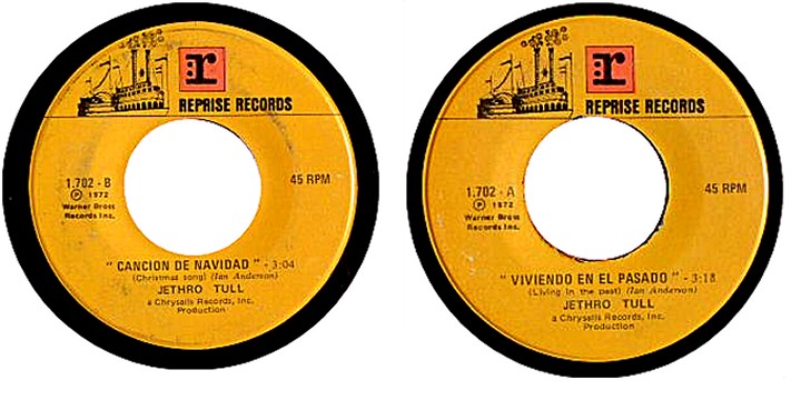 LIVING IN THE PAST / A CHRISTMAS SONG. Reprise Label. |