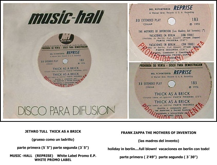 THICK AS A BRICK Part1 & Part 2. /Mothers Of Invention WL Promo EP |
