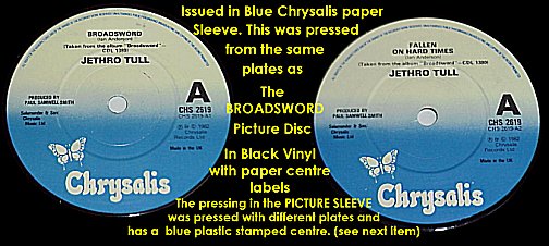 BROADSWORD / FALLEN ON HARD TIMES. Pic Sl. Blue centre. |